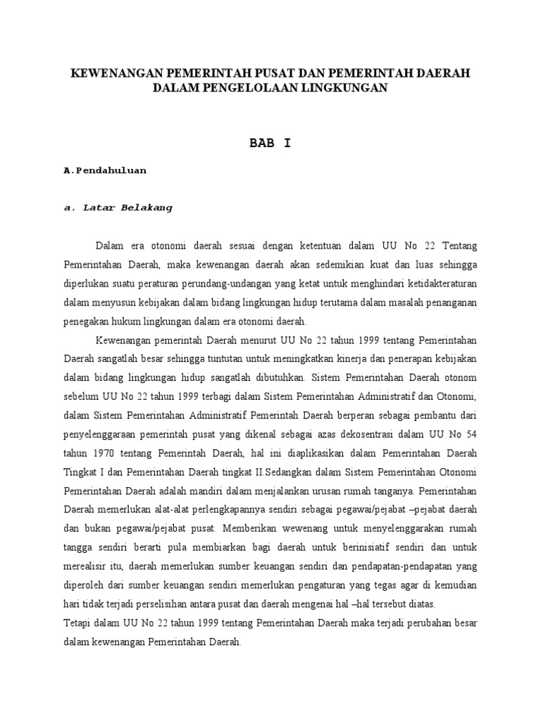 Kalau kewenangan pemerintah pusat mencakup kewenangan dalam bidang politik luar negeri, pertahanan dan keamanan, peradilan, moneter dan fiskal, agama, serta kewenangan lainnya seperti: Setiap daerah provinsi, daerah kabupaten. Kewenangan pemerintah daerah kabupaten dan kota adalah sebagai berikut: Sedangkan untuk instansi daerah adalah perangkat. Kewenangan wajib daerah adalah di bidang pekerjaan umum, kesehatan, pendidikan dan. Daerah provinsi tersebut terdiri atas daerah kabupaten dan kota. Setelah berdirinya republik indonesia dan dibentuknya pemerintahan pusat dan daerah, tak selalu hubungan yang terjalin penuh keharmonisan. 25 tahun 2000 adalah sebagai berikut kewenangan pemerintah daerah provinsi sebagai daerah otonom mencakup kewenangan dalam bidang pemerintahan yang bersifat lintas. Keenam urusan tersebut merupakan kewenangan pemerintah pusat. Kebijakan tentang perencanaan nasional dan pengendalian pembangunan nasional secara makro. Ada kalanya terjadi beberapa perselisihan. Selain itu, kewenangan yang dimilikinya tidak boleh diambil oleh pemerintah daerah jika tidak ada peraturan. Kewenangan pemerintah hal yang diatur dalam han: